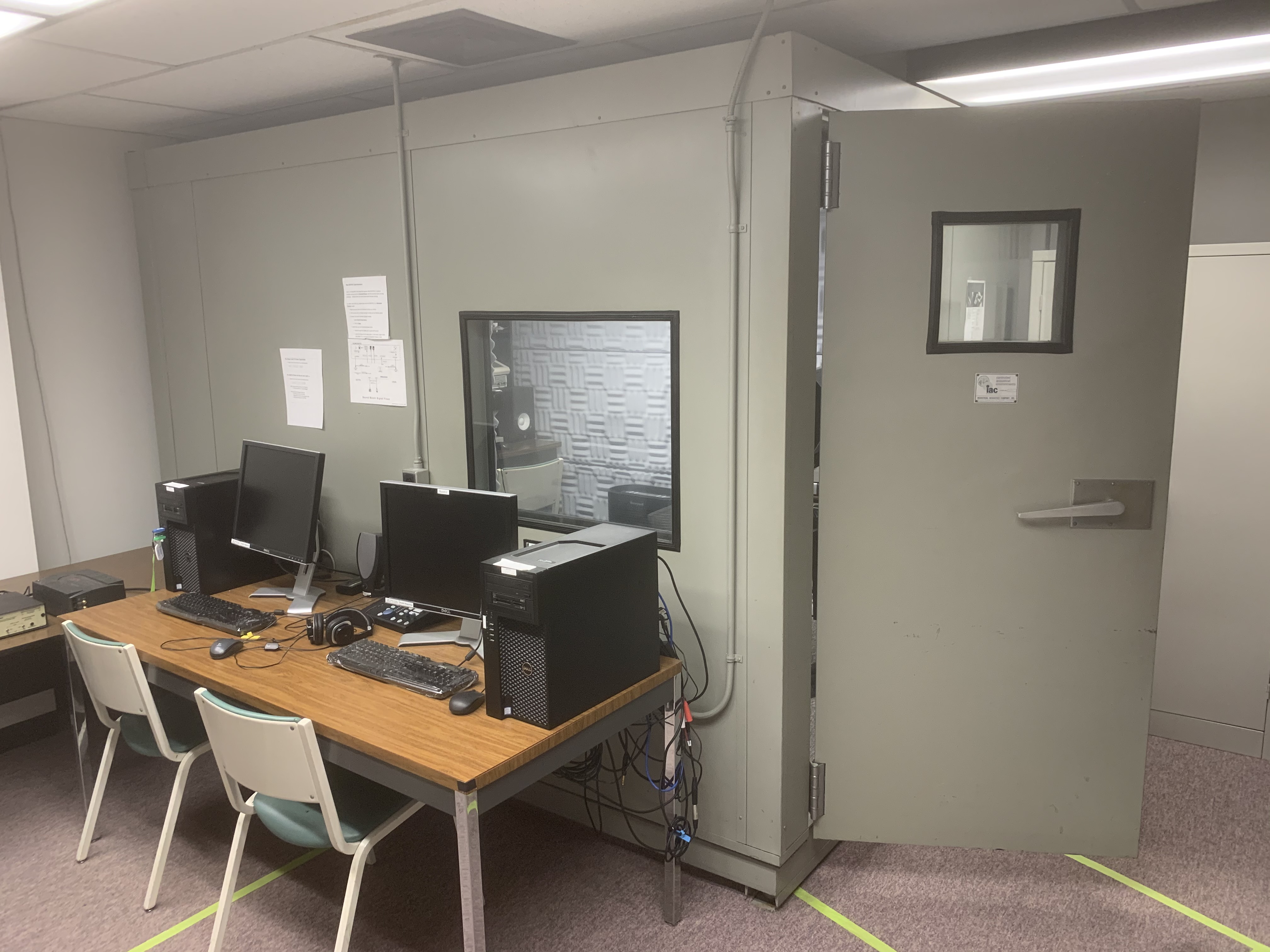 Our isolated sound recording booth serves a range of purposes--from basic recording to perceptual, psycholinguistic, and ultrasonic experimentation.
