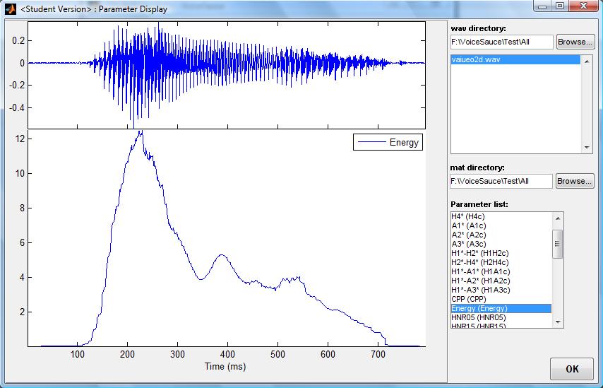 Inputs are standard wave (*.wav) files and the measures currently computed are: